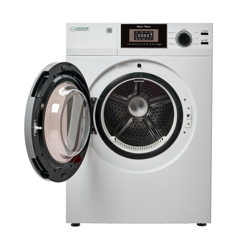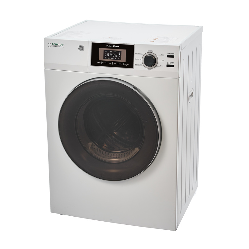 The Equator ED 866 Vented Dryer is a powerful, efficient, and space-saving dryer ideal for compact living spaces. It offers a 3.5 cu—ft. capacity and can handle up to 15.4 lbs of laundry per load. With a 110V / 1200W electrical connection and a 65 RPM spin speed, it ensures fast and thorough drying. its sensor dry technology automatically adjusts drying times and offers minimal energy consumption. Designed for convenience and efficiency, the dryer fits perfectly into compact spaces, measuring 33.5 x 23.6 x 22 inches, and has a depth of 40.1 inches with the door open. This vented dryer offers various drying cycles, such as refresh, shoes, sanitize, and allergen, along with customizable drying options and heat levels that ensure both performance and convenience. Designed for tight spaces, the ED 866 dryer offers a reversible door, adjustable legs, user-friendly touch controls, and a stackable/ freestanding design. Equator’s comprehensive warranty further solidifies its position as a reliable laundry solution for on-board use.