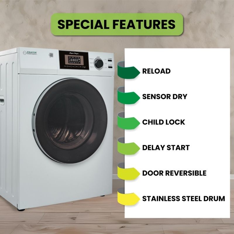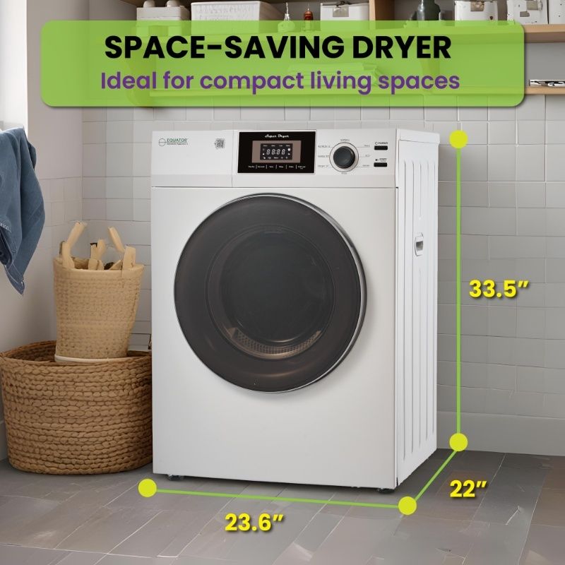 + Free ShippingThe Equator ED 866 Vented Dryer is a powerful, efficient, and space-saving dryer ideal for compact living spaces. It offers a 3.5 cu—ft. capacity and can handle up to 15.4 lbs of laundry per load. With a 110V / 1200W electrical connection and a 65 RPM spin speed, it ensures fast and thorough drying. its sensor dry technology automatically adjusts drying times and offers minimal energy consumption. Designed for convenience and efficiency, the dryer fits perfectly into compact spaces, measuring 33.5 x 23.6 x 22 inches, and has a depth of 40.1 inches with the door open. This vented dryer offers various drying cycles, such as refresh, shoes, sanitize, and allergen, along with customizable drying options and heat levels that ensure both performance and convenience. Designed for tight spaces, the ED 866 dryer offers a reversible door, adjustable legs, user-friendly touch controls, and a stackable/ freestanding design. Equator’s comprehensive warranty further solidifies its position as a reliable laundry solution for on-board use.